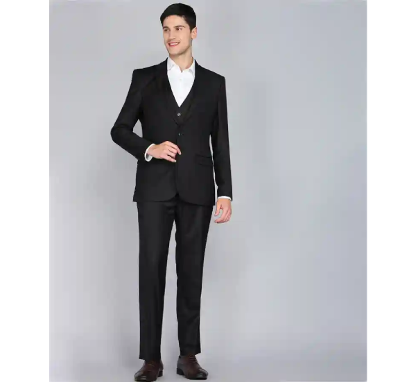 Crafted from a high-quality Polyester Blend fabric, this suit offers an excellent balance of properties. Polyester contributes significantly to the suit’s durability, wrinkle resistance, and shape retention, ensuring it looks crisp and sharp throughout your day. The blend (often with viscose, rayon, or a small percentage of wool) adds a softer feel, enhanced breathability, and improved drape, ensuring comfort even during extended wear in Ghaziabad’s climate. This blend makes the suit a practical and easy-to-maintain option.