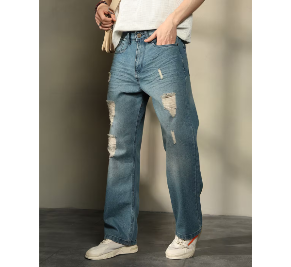 Men’s Loose Fit High Rise Blue Jeans offer a relaxed and comfortable style with a focus on a higher waist. These jeans are designed to provide a looser fit through the leg, offering ease of movement and a casual aesthetic.