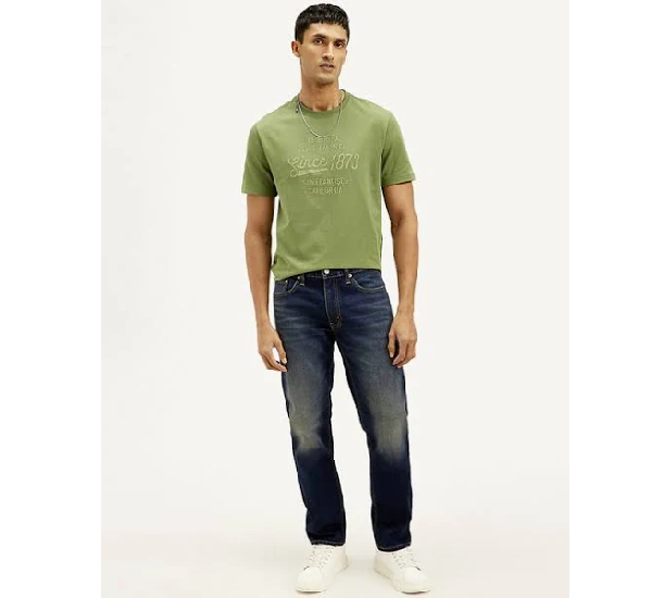 Men’s 555 Straight Fit Jeans offer a relaxed straight leg with more room in the seat and thigh, providing comfortable wear. They typically have a mid-rise and classic five-pocket styling, available in various washes and materials (some with stretch, some non-stretch). A timeless and versatile denim choice for everyday style.