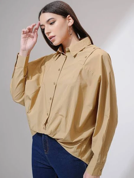 Features like long sleeves with button cuffs, a curved or straight hemline, and subtle side slits (on some designs) add to its comfort and wearability. Available in a range of soft neutrals, earthy tones, and washed pastels, the shirt complements everything from jeans and shorts to wide-leg trousers or layered skirts.