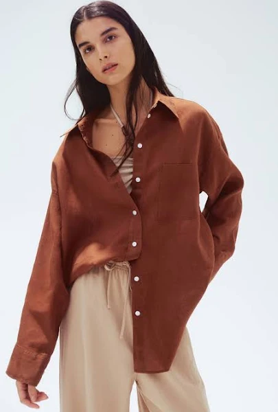 the Oversized Shirt, a must-have staple for warm weather and all-season layering. Designed for women who value both comfort and understated style, this shirt brings together the natural coolness of linen with a flowing, oversized silhouette that flatters every body type.