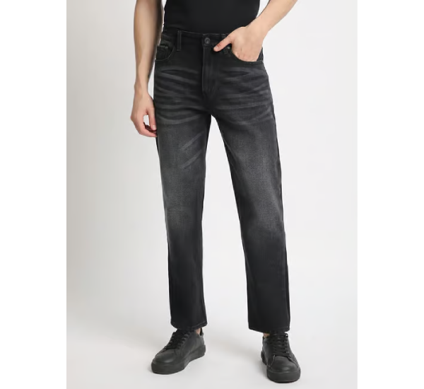 Relaxed Jeans in denim black for men offer a comfortable and easy-going style. These are typically 5-pocket jeans made from rigid cotton denim, providing a classic, non-stretch feel that softens with wear.