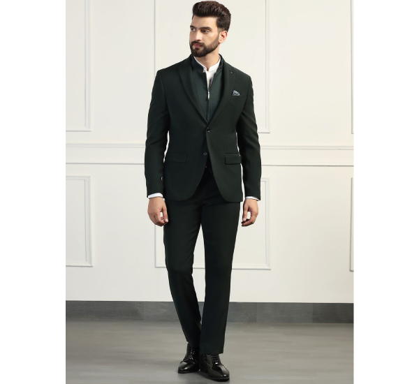 Three Piece Textured Formal Suit, a sophisticated ensemble designed for the discerning gentleman in Ghaziabad. This suit offers a contemporary take on classic formal attire, combining a rich visual and tactile experience with impeccable tailoring, making it an ideal choice for weddings, galas, high-profile business events, and any occasion demanding a sharp, memorable presence.