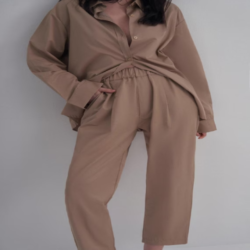 Available in a range of earthy and pastel tones, this set is designed to complement a variety of skin tones and style preferences. You can style the shirt tucked in for a polished look, or wear it loose for an effortlessly relaxed vibe. Pair with flats, sneakers, or minimal accessories to suit any occasion.