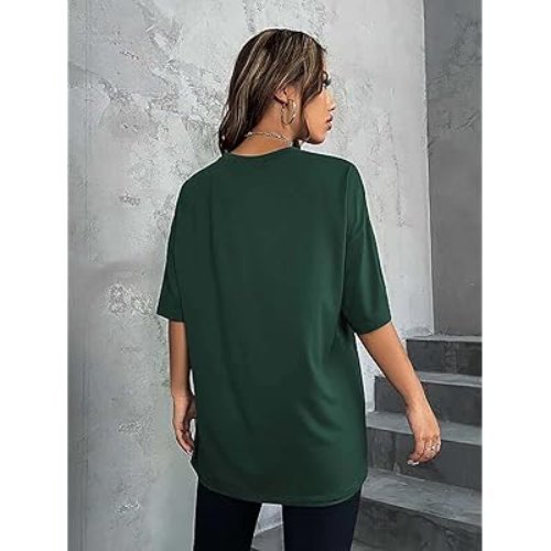 Women’s Casual Printed Round Neck, Oversized Longline Drop Shoulder T-Shirt